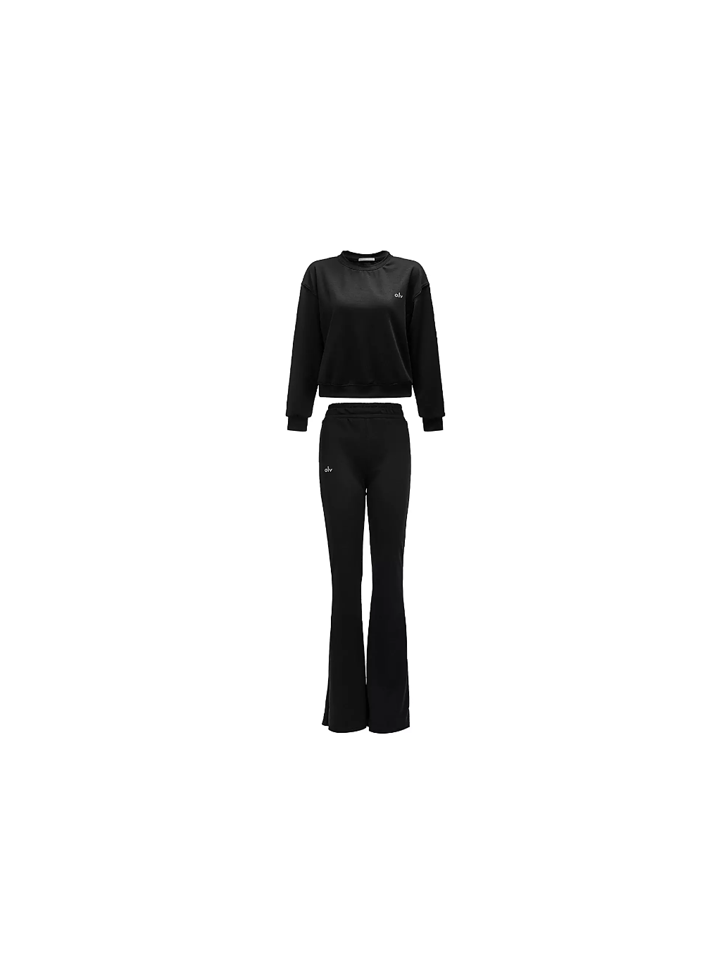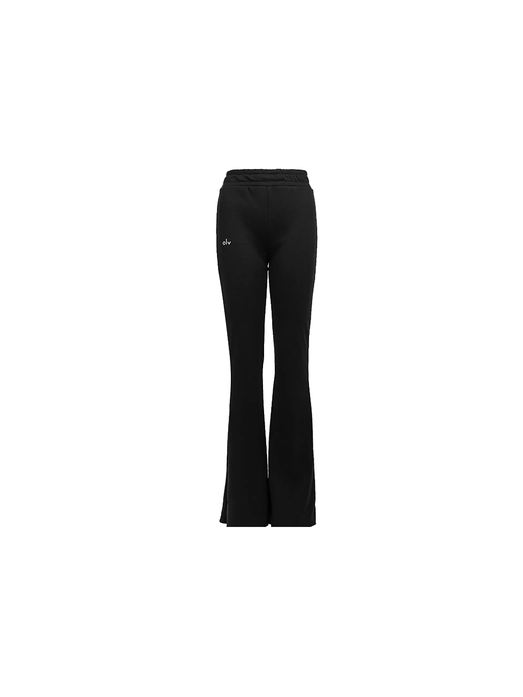 Spodní díl - dokonale padnoucí kalhoty s vysokým pasem, které decentně zvýrazňují siluetu. Nohavice jsou na spodním okraji jemně rozšířené a na přední straně je malé logo OLV.