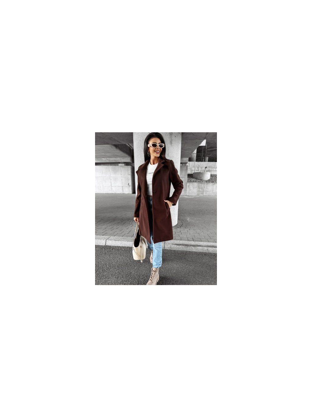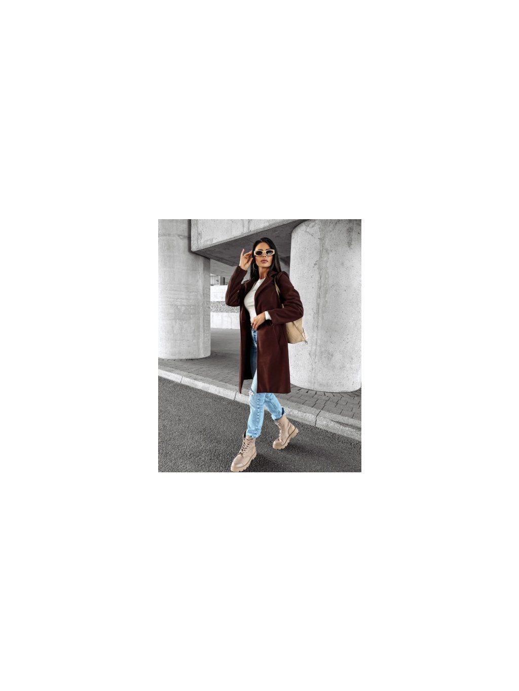 Dámský midi kabát OLAVOGA LOVER - Hnědý