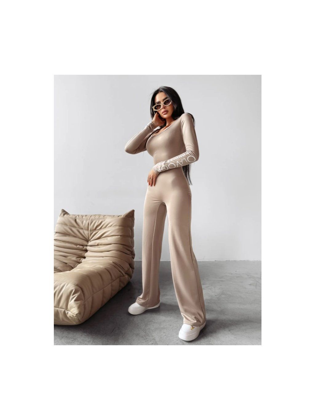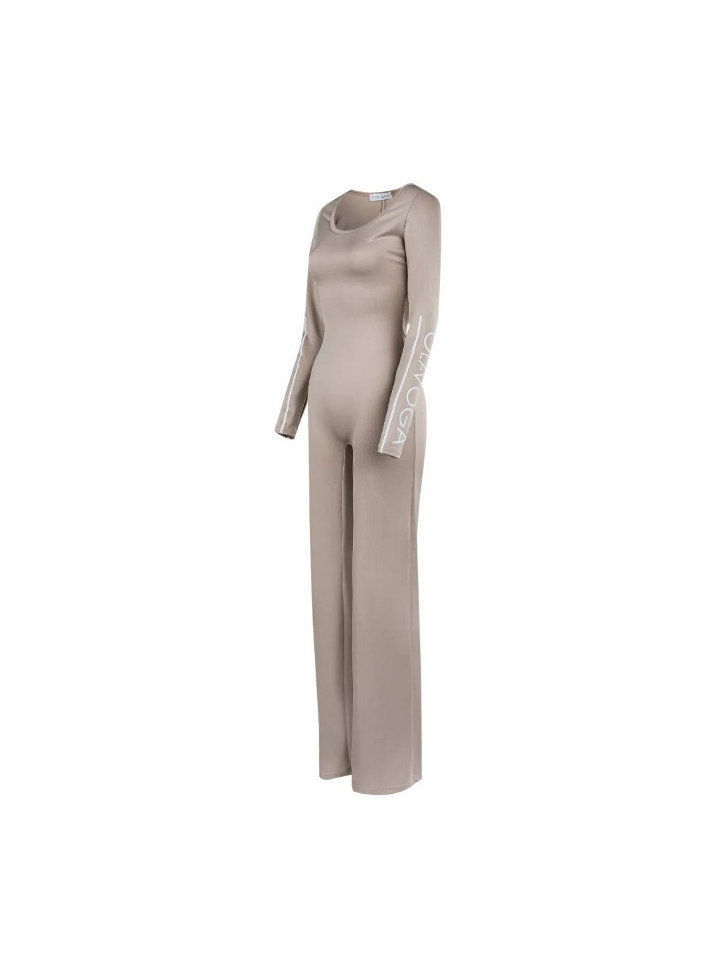 Má hluboký, nápadný výstřih, který mu dodává ženský nádech. Je vyroben z vysoce kvalitní elastické tkaniny, která dokonale přiléhá k tělu a tvaruje postavu. Nohavice se směrem dolů rozšiřují, což celku dodává elegantní a stylový vzhled. Na rukávech je velké nápadné logo OLAVOGA, které zdůrazňuje exkluzivitu designu.