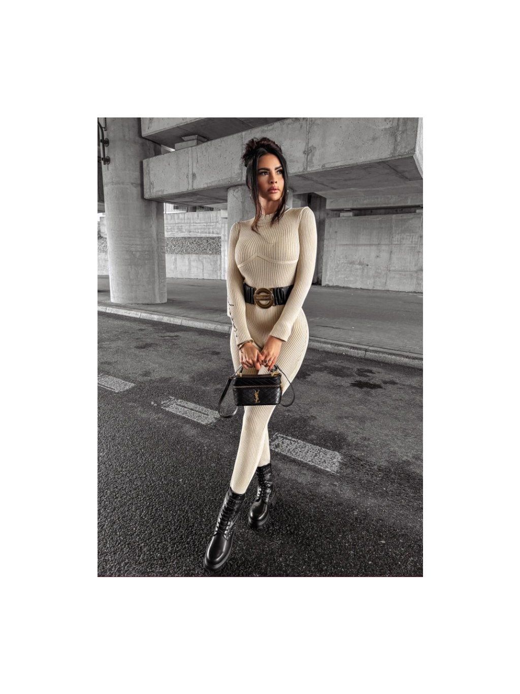 Na zádech je zip v odstínu látky pro ucelený vzhled. Na přední straně vyniká stylové prošití, které krásně zvýrazňuje siluetu. Na jednom z rukávů je vyšitý nápis s logem značky OLAVOGA, který dodává elegantní nádech.