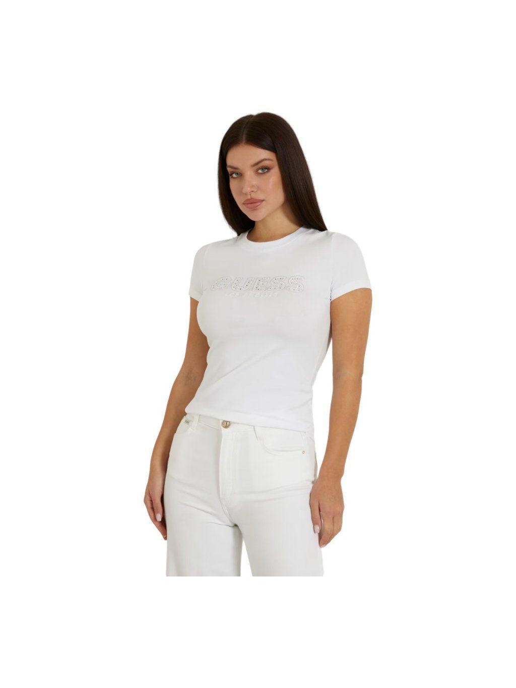 Dámský top GUESS s krátkým rukávem a logem, bílý