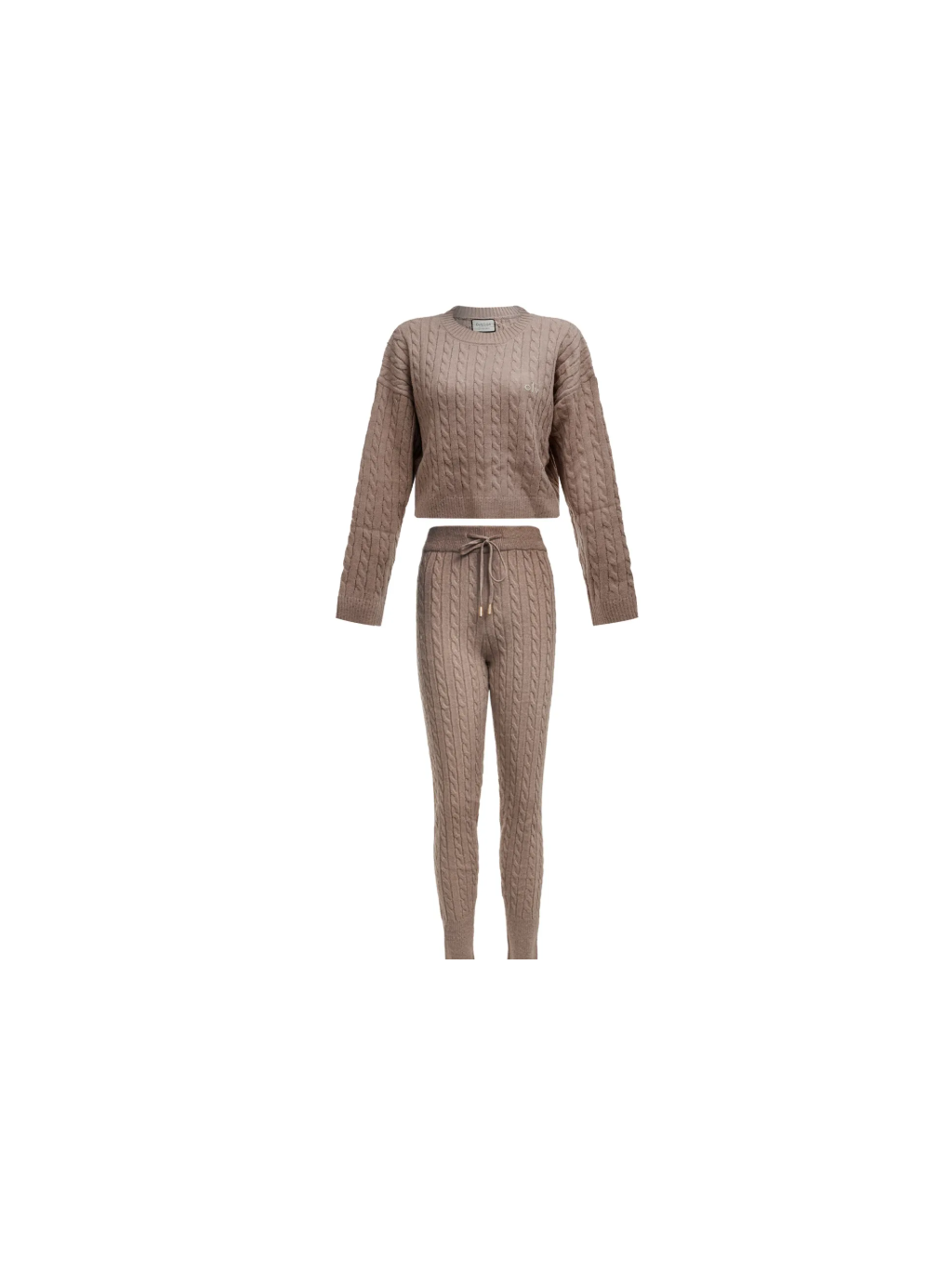 Vrchní díl je stylový crop top v podobě krátkého svetru s výraznou kostkovanou vazbou. Dlouhé rukávy a kulatý výstřih zajišťují všestrannost, zatímco decentní logo OLV na hrudi dodává sofistikovaný nádech. Díky měkkému úpletu je svetr mimořádně příjemný na celodenní nošení. Kalhoty s vysokým pasem krásně tvarují siluetu a elastický pas se stahovací šňůrkou umožňuje přizpůsobení. Žebrované manžety dodávají sportovní nádech, zatímco logo OLV na boku v barvě výrobku je ochrannou známkou značky. Tato souprava je ideální pro ležérní denní styling i v kombinaci s módními doplňky na vycházky s přáteli. Jednotlivé kousky můžete nosit samostatně nebo dohromady - záleží jen na vás, jaký styl si zvolíte!
