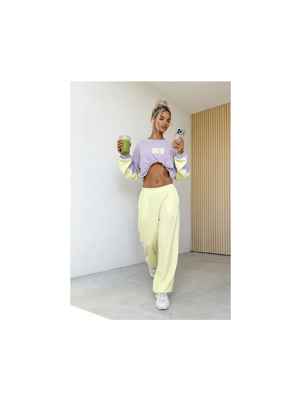 Volná mikina s ukončeným lemem vám dává naprostou svobodu – můžete ji nosit v klasické, delší podobě, nebo ji decentně ohrnout a vytvořit tak dynamičtější vzhled.