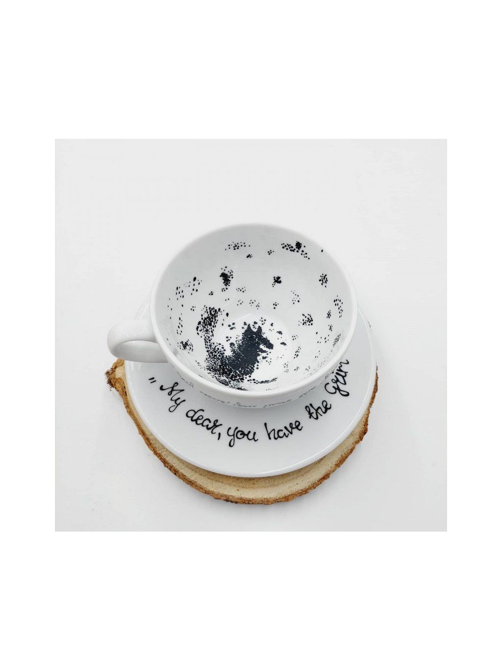Ručně malovaný šálek s podšálkem o objemu 350 ml s motivem Smrtky.