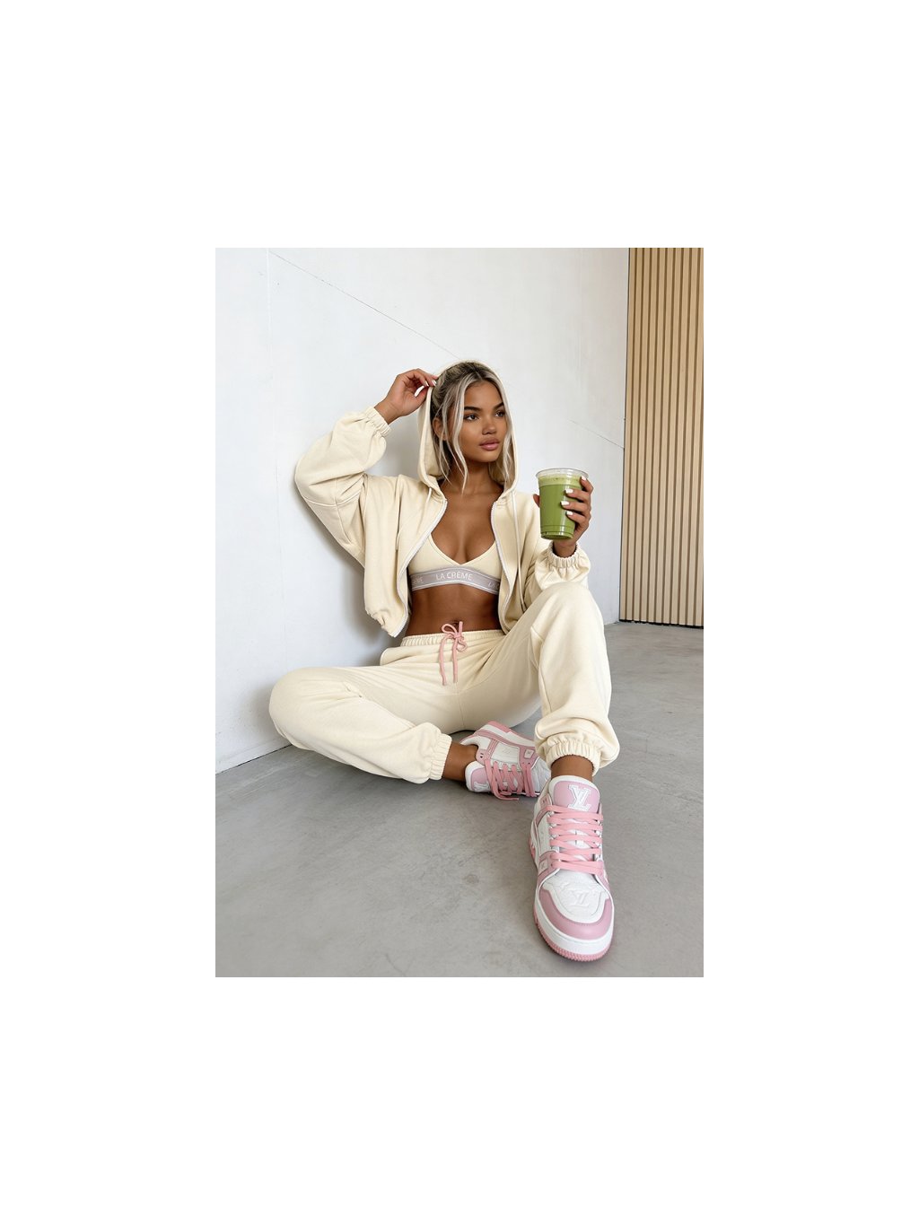 Kokosová tepláková souprava 3 v 1: kalhoty, mikina, top, Sportovní