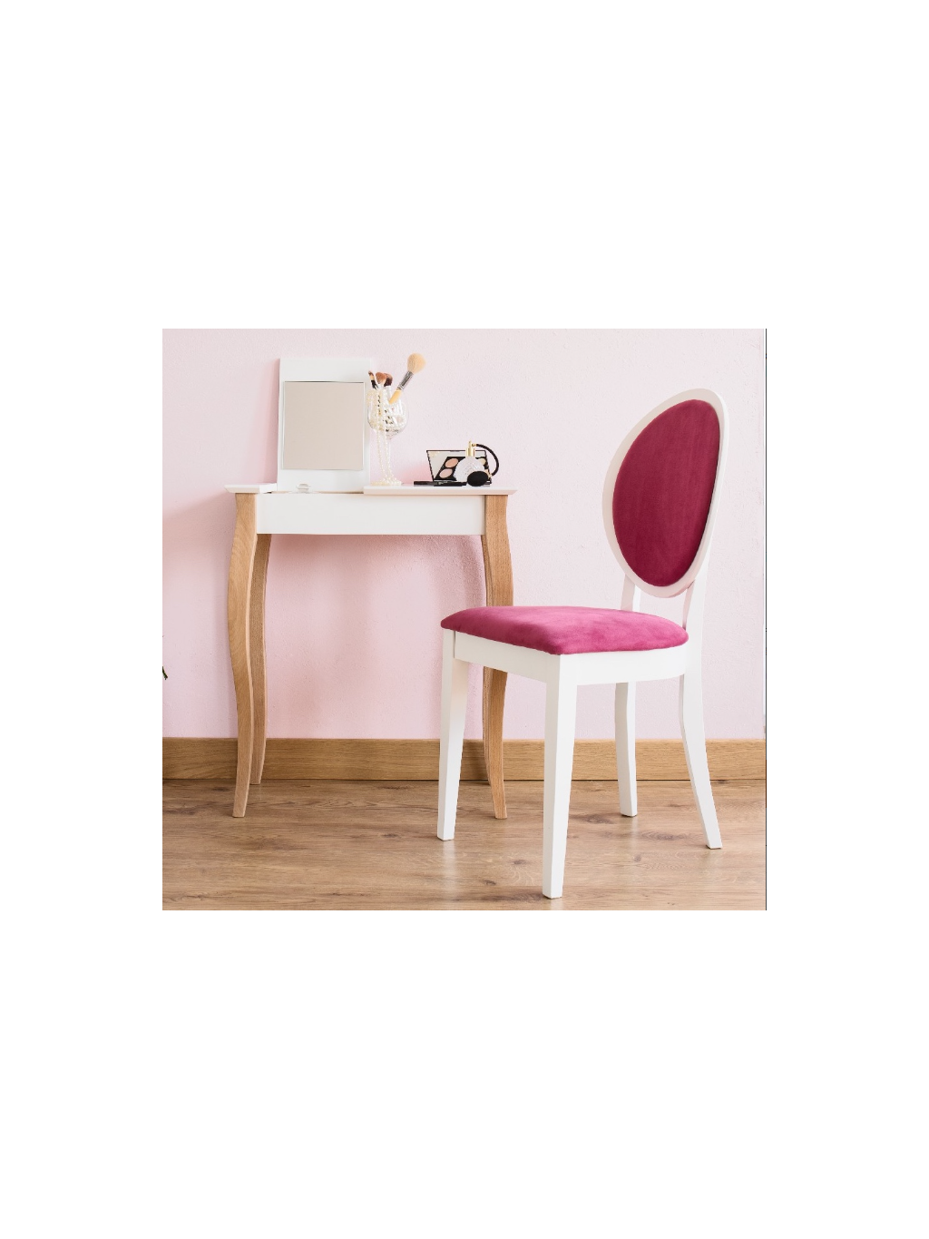 Konzolový stolek Lillo 65 se zrcadlem je vyroben z laminované MDF desky a je k dispozici v různých barvách. Nohy jsou vyrobeny z masivního bukového dřeva, které je k dispozici v přírodním odstínu nebo v černé barvě.