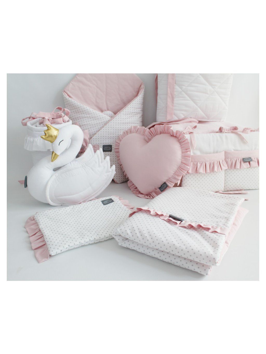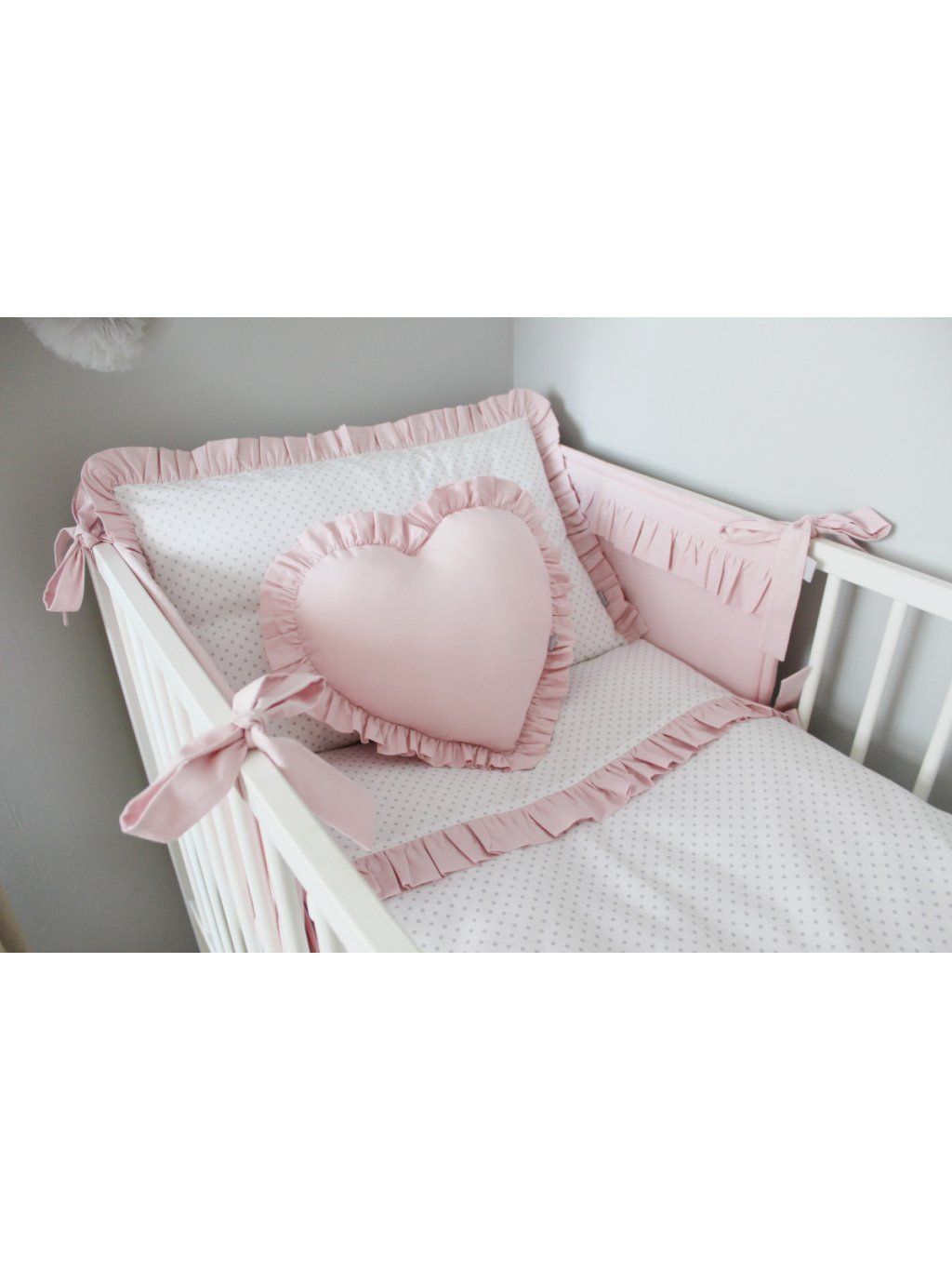Můžete si také zakoupit srdíčko s volánky, organizér a napínací prostěradlo. Pokud máte nápad na vlastní povlečení, dejte nám vědět. K dispozici jsou i jiné velikosti a kombinace látek. Materiál: 100% bavlna s bezpečnostním certifikátem.