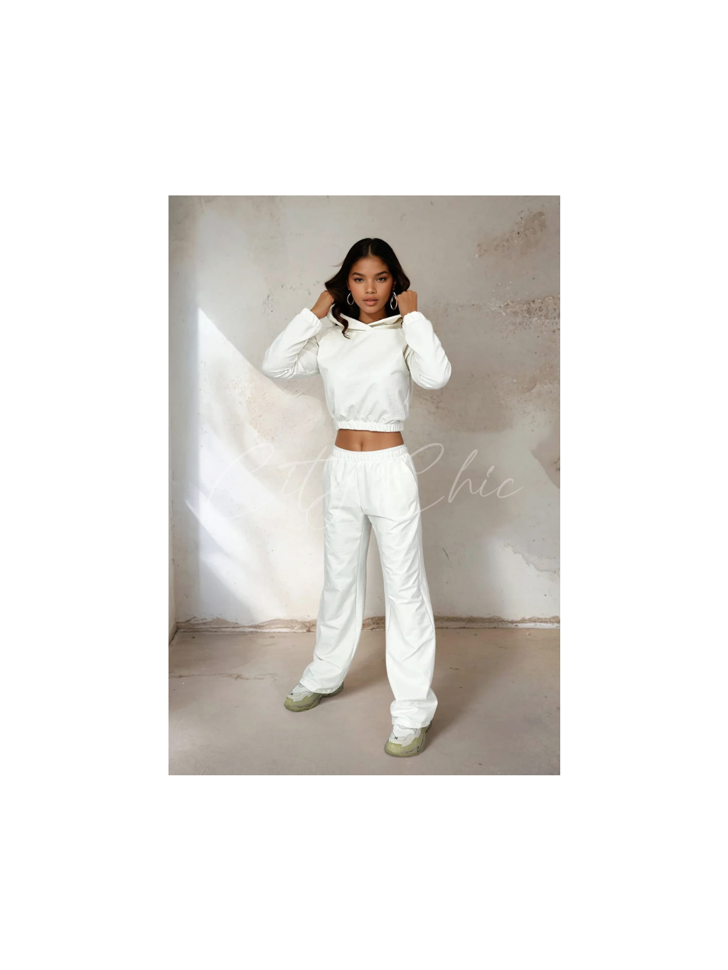 Mikina s kapucí a kalhoty-široké nohavice - v bílé barvě