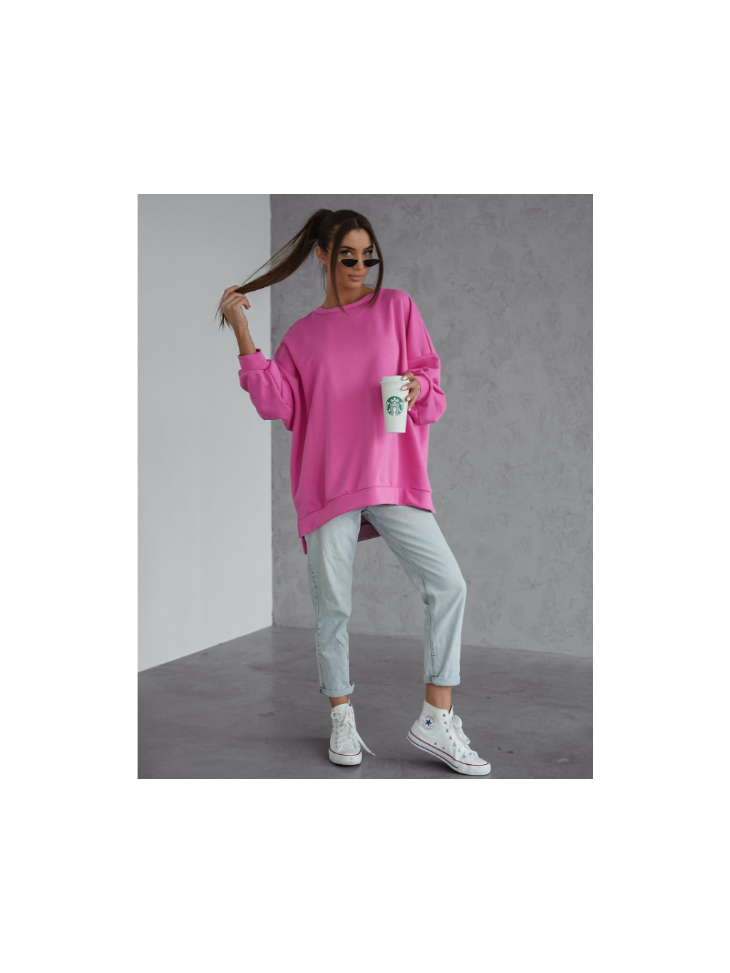 Mikina s motýlkem Me Gusta - oversized střih - v bonbónově růžové barvě