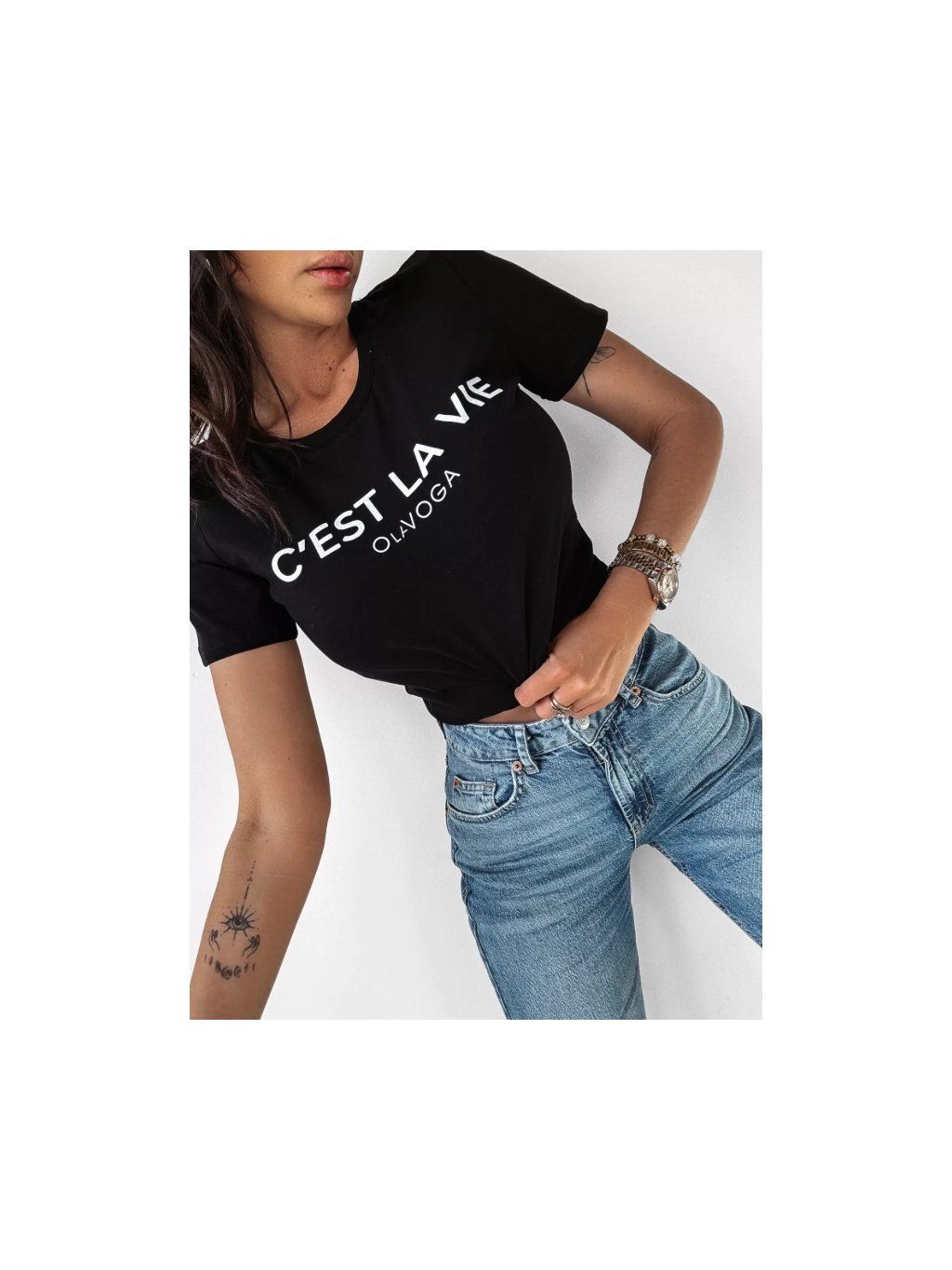 Tričko, které lichotí postavě, je ušité z vysoce kvalitní bavlny. Na přední straně je jedinečný nápis "C'EST LA VIE" a decentní logo značky OLAVOGA.