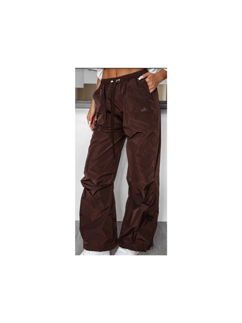 Na boku kalhot je minimalistický nápis OLV a na zadní straně praktické kapsy, které modelu dodávají funkčnost a městský nádech. Kalhoty OLAVOGA se hodí jak k tričkům, tak k oversize mikinám a vypasovaným topům, a vytvářejí tak pohodlné a stylové každodenní komplety.