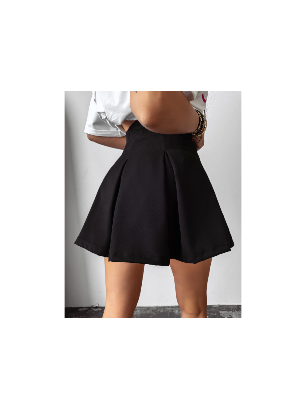 Skládaná sukně-šortky, na boku rozepnutá. Vyrobeno z vysoce kvalitní viskózové směsové tkaniny. Minimalistická výšivka GET IT GIRL a logo značky OLAVOGA na přední straně.