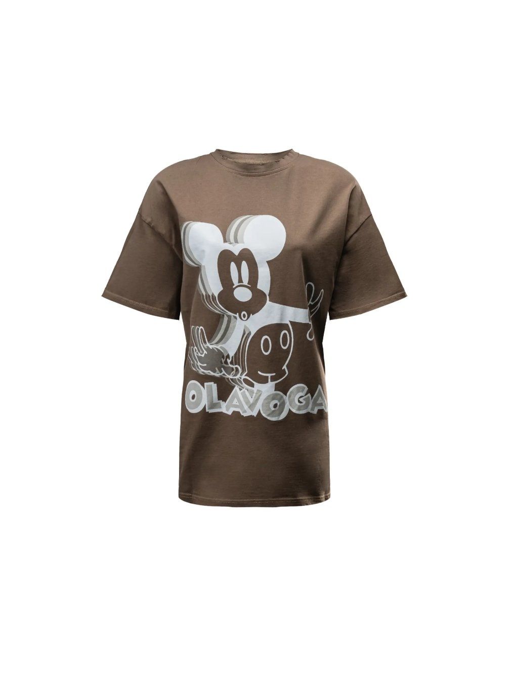 OLAVOGA BESCO dámské grafické tričko - hnědé One Size