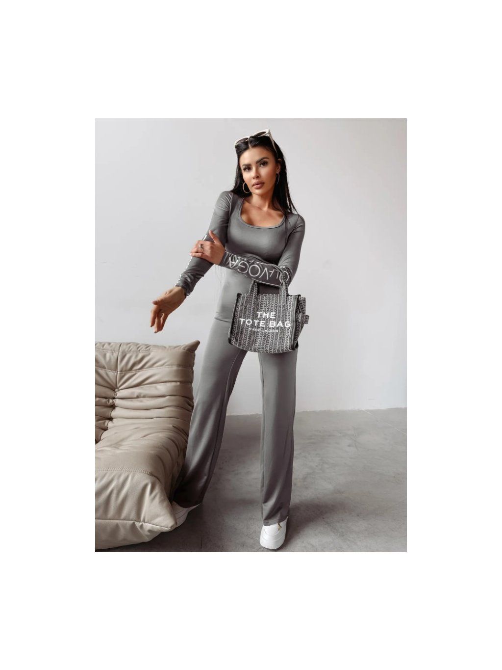 Má hluboký, nápadný výstřih, který mu dodává ženský nádech. Je vyroben z vysoce kvalitní elastické tkaniny, která dokonale přiléhá k tělu a tvaruje postavu. Nohavice se směrem dolů rozšiřují, což celku dodává elegantní a stylový vzhled. Na rukávech je velké nápadné logo OLAVOGA, které zdůrazňuje exkluzivitu designu.
