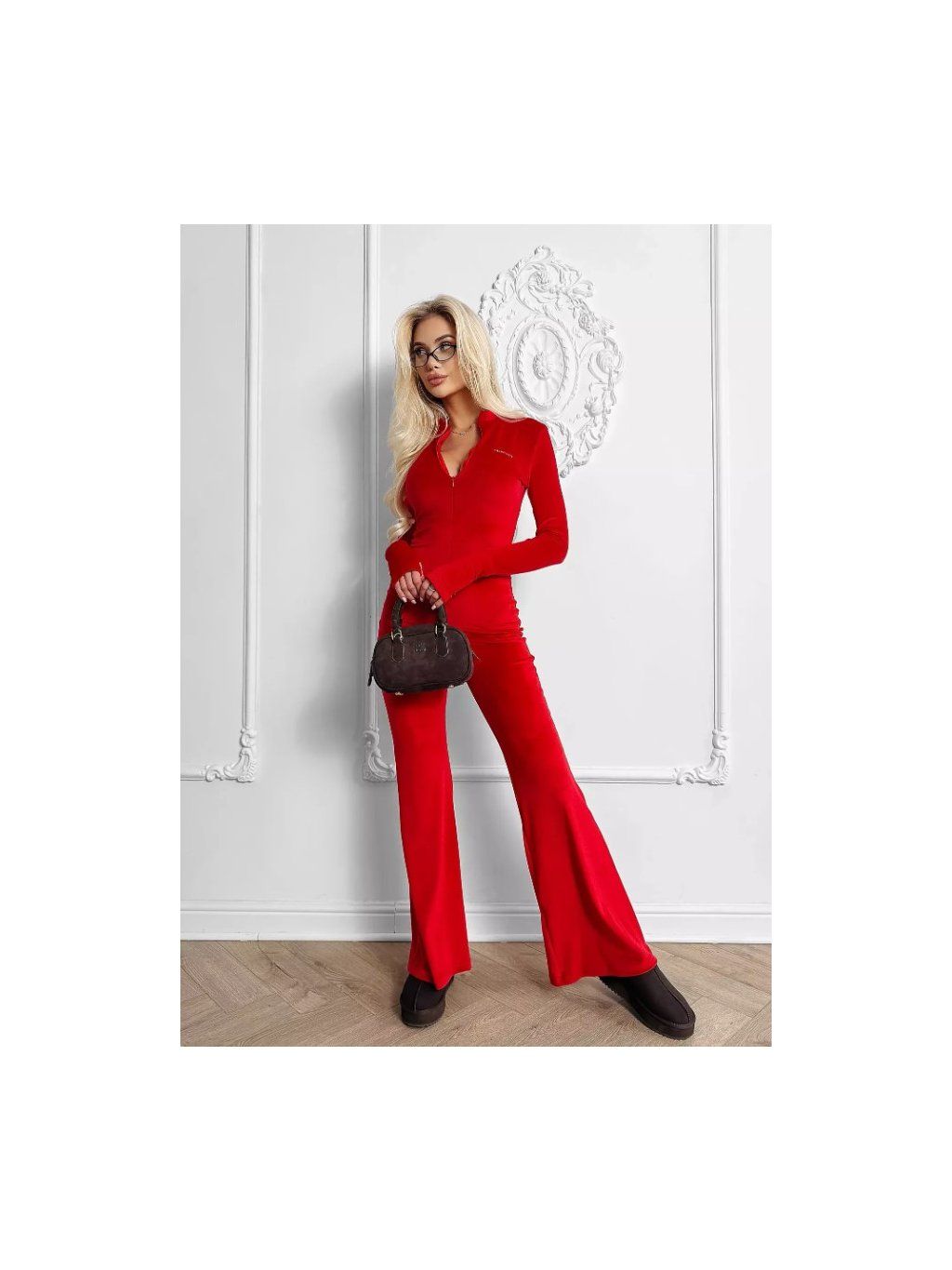 OLAVOGA CRYSTAL FLARE dámský velurový overal - červený