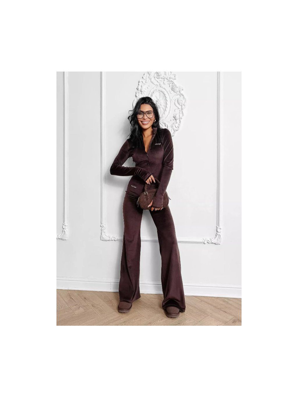 OLAVOGA CRYSTAL FLARE dámský velurový overal - hnědý