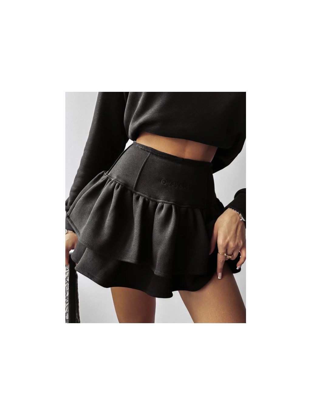 Sukně-šortky s ozdobnými volánky, které dodávají šarm a lehkost. Vysoký pásek v pase skvěle zeštíhluje postavu, zdůrazňuje přednosti postavy a zajišťuje pohodlné nošení. Na přední straně je decentní minimalistická výšivka s logem značky OLAVOGA, která dodává tomuto kousku oblečení elegantní nádech a dává mu vyniknout. Díky One Sizemu střihu a módnímu designu je lze snadno kombinovat s různými halenkami a doplňky, což z nich činí mimořádně One Size kousek šatníku. Volánky navíc dodávají sukním a šortkám romantický nádech, takže každý outfit bude lehký a ženský.