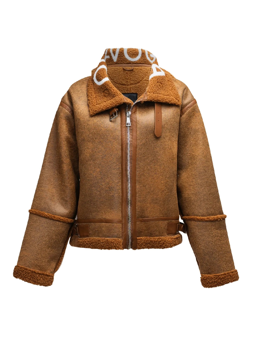 OLAVOGA LENNOX dámská bunda z ovčí kůže - Velbloudí