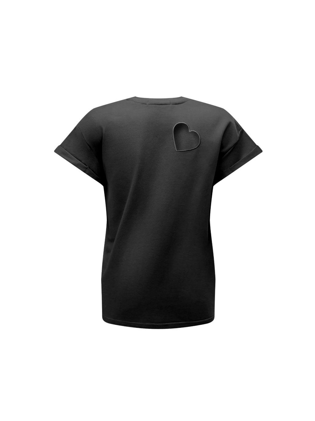 One Size tričko s krátkým rukávem klasického střihu. Je vyrobeno z nejkvalitnější strečové bavlny, která zaručuje pohodlí a perfektně padne. Na přední straně decentní písemná výšivka s logem značky OLAVOGA, barevně ladící s celkem. Výrazným prvkem jsou nápadná vykrojená srdíčka na přední i zadní straně, která přidávají na originalitě. Celek doplňují stylově ohrnuté rukávy.