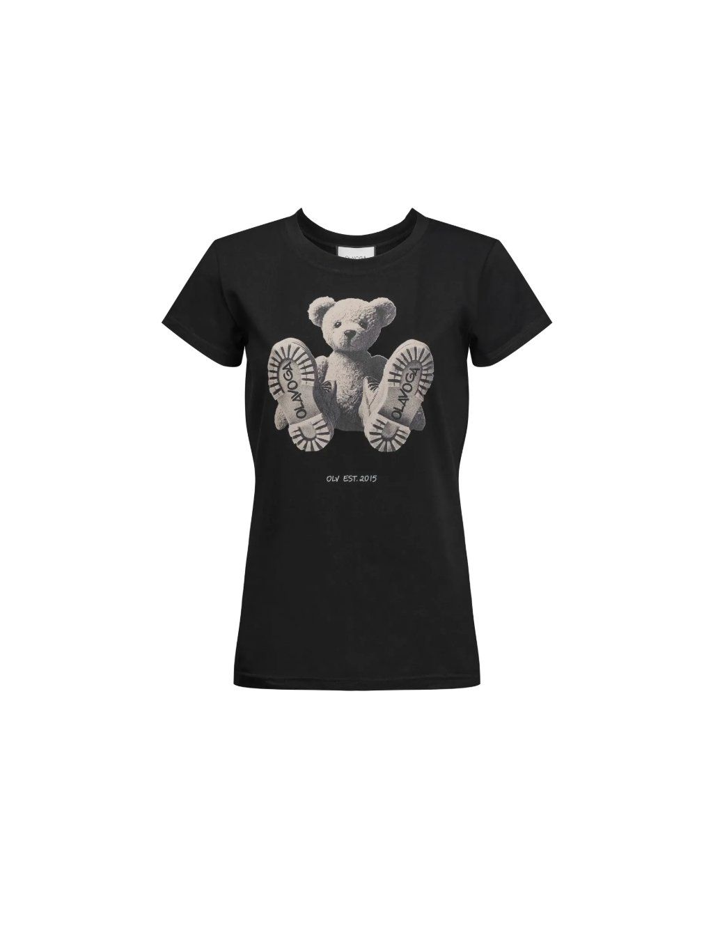 Vypasované tričko s krátkými rukávy, které se vyznačuje prodlouženým střihem. Je vyrobeno z pružné, vysoce kvalitní bavlny, která zajišťuje pohodlí a odolnost. Na přední straně je potisk s medvídkem, doplněný decentním stylovým nápisem "OLV EST". 2015". Tričko kombinuje minimalistický design s originálním nádechem, který dodává stylizaci jedinečný nádech.