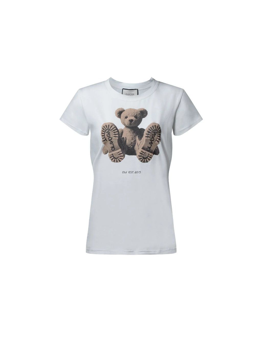 Vypasované tričko s krátkými rukávy, které se vyznačuje prodlouženým střihem. Je vyrobeno z pružné, vysoce kvalitní bavlny, která zajišťuje pohodlí a odolnost. Na přední straně je potisk s medvídkem, doplněný decentním stylovým nápisem "OLV EST". 2015". Tričko kombinuje minimalistický design s originálním nádechem, který dodává stylizaci jedinečný nádech.