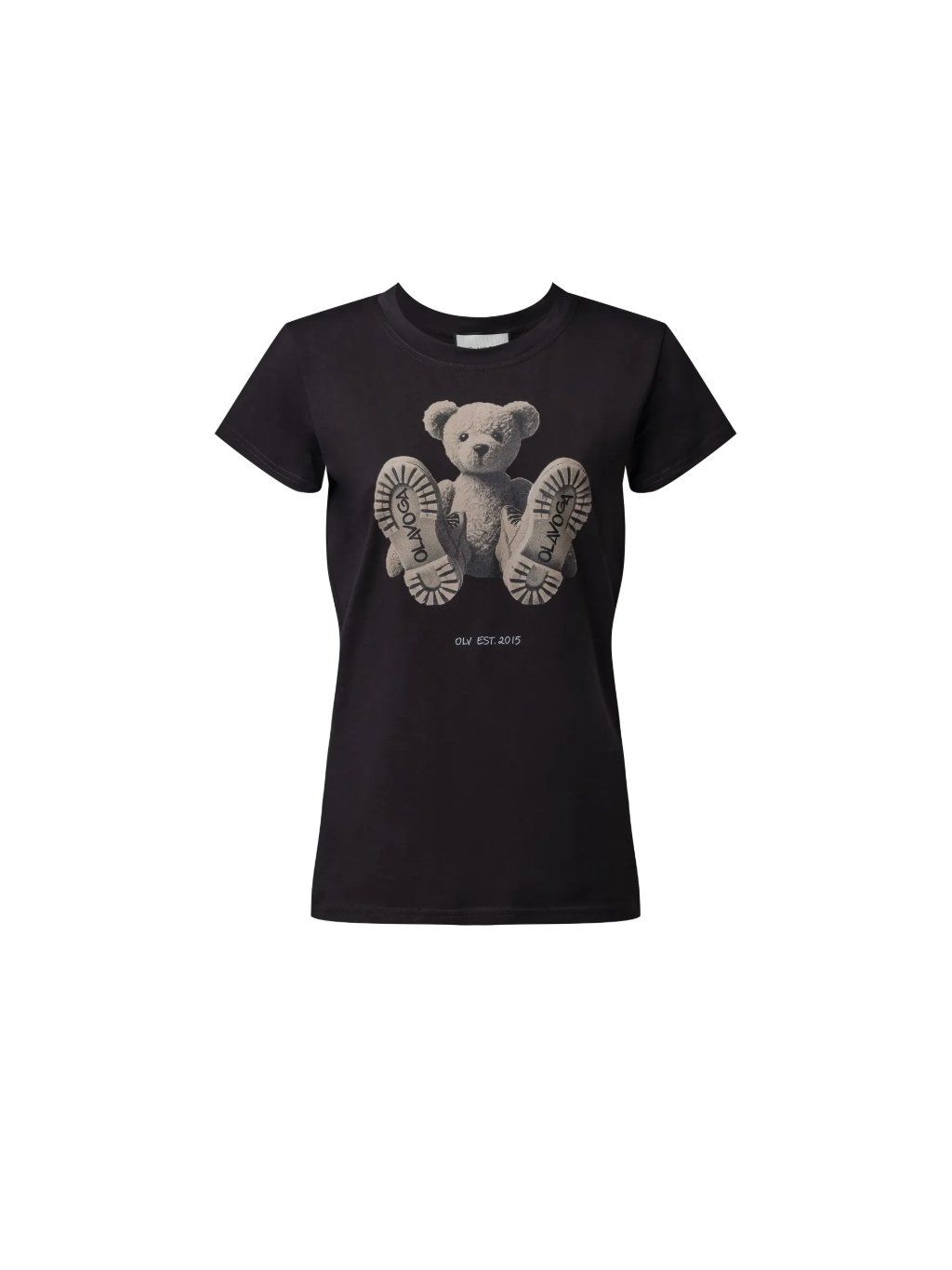 Vypasované tričko s krátkými rukávy, které se vyznačuje prodlouženým střihem. Je vyrobeno z pružné, vysoce kvalitní bavlny, která zajišťuje pohodlí a odolnost. Na přední straně je potisk s medvídkem, doplněný decentním stylovým nápisem "OLV EST". 2015". Tričko kombinuje minimalistický design s originálním nádechem, který dodává stylizaci jedinečný nádech.