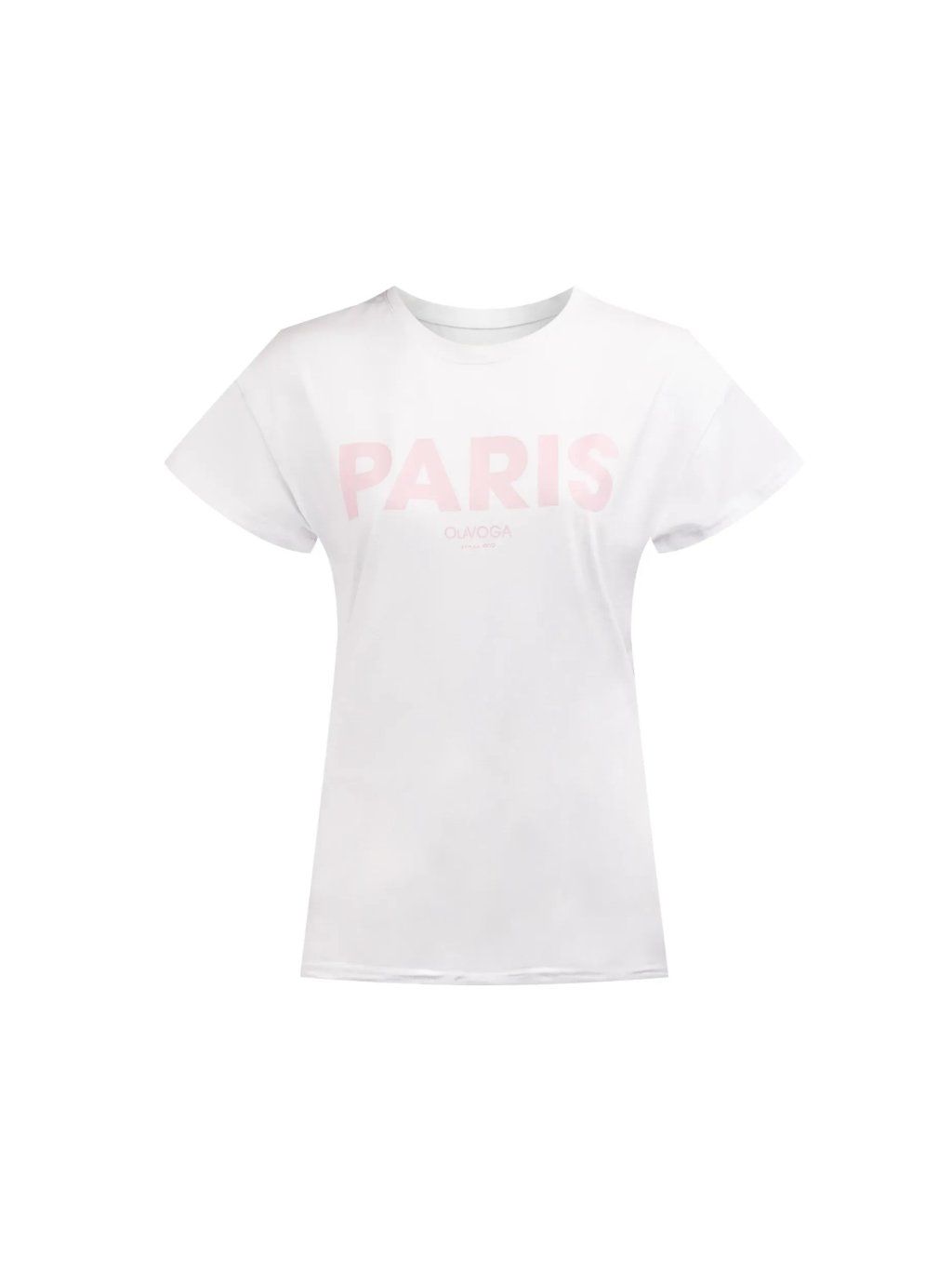 Tričko s krátkým rukávem a rovným střihem. Vyrobeno ze 100% bavlny. Výrobek má ohrnuté rukávy. Na přední straně velký nápis PARIS s minimalistickým logem značky OLAVOGA.