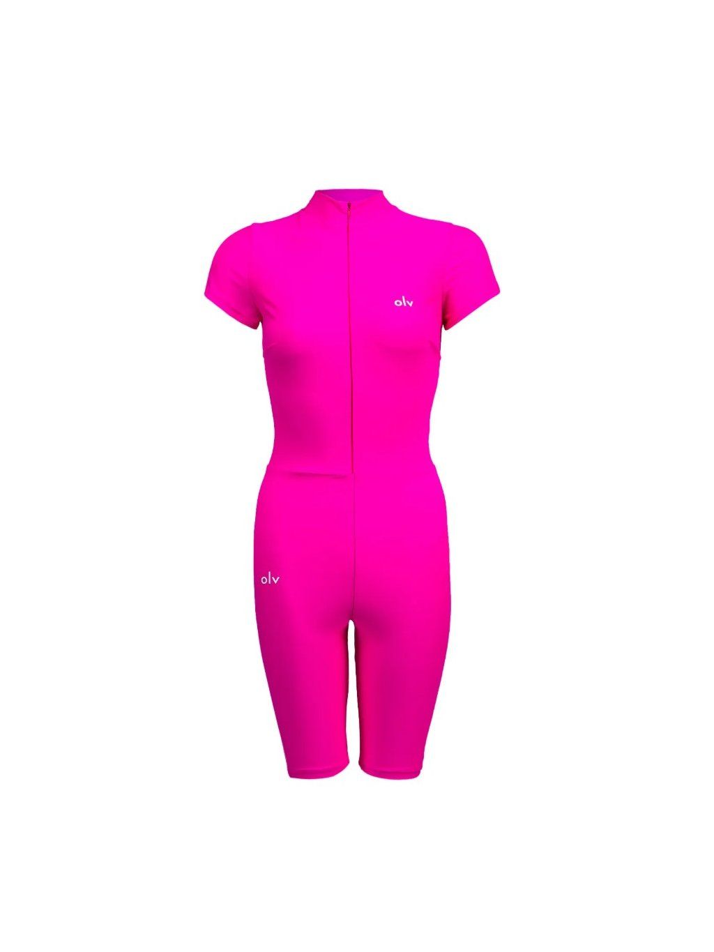 Model má krátké rukávy a zkrácenou délku nohavic, takže je ideální pro teplejší dny nebo aktivity vyžadující plnou volnost pohybu. Praktický přední zip umožňuje upravit hloubku výstřihu a přizpůsobit tak vzhled dané příležitosti - od sportovně ležérního až po smyslnější verzi vzhledu.