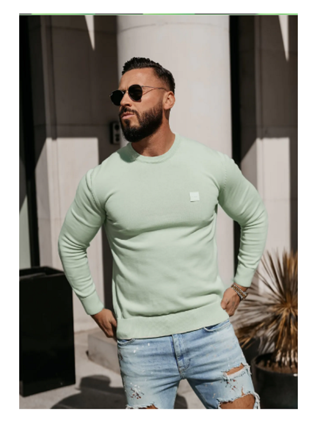 Díky kulatému výstřihu, žebrovaným manžetám a tonální nášivce s logem ALAVOS v zelené barvě se dobře hodí k ležérnímu i elegantnímu stylu, zatímco bavlněný úplet udržuje celkový vzhled lehký a čistý.