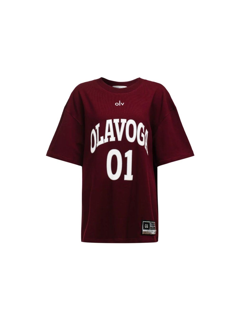 Přední stranu trička zdobí velký kontrastní potisk OLAVOGA 01, doplněný malým logem OLV těsně pod výstřihem, které dodává tričku decentní nádech značky. Zadní stranu trička zdobí poutavý potisk se zvětšeným číslem 01, díky němuž model upoutá pozornost ze všech stran. Dalším výrazným detailem je nášivka s logem ve spodní části.