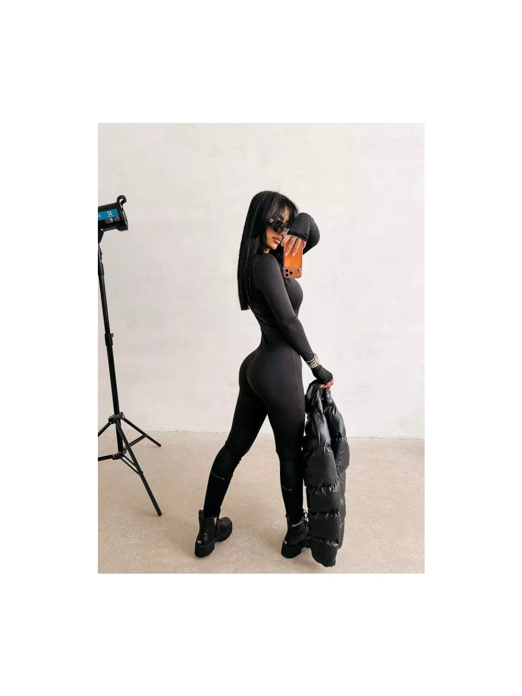 Model má dlouhé rukávy a mírně zvýšený límec zapínaný na decentní zip. Jednobarevné černé provedení. Diskrétní logo značky OLAVOGA na přední straně.