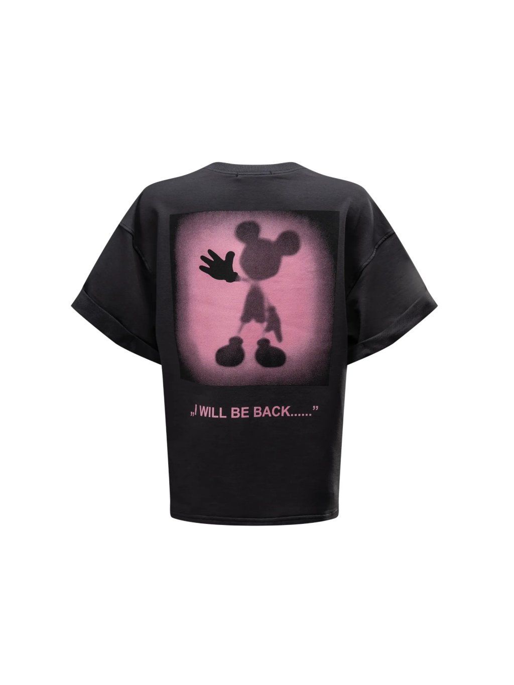 Tričko klasického střihu s krátkými rukávy a prodlouženou siluetou. Vyrobeno z elastické tkaniny. Rukávy jsou jemně ohrnuté, což mu dodává módní, mírně volný charakter. Přední stranu zdobí minimalistické kontrastní logo OLAVOGA, zatímco zadní stranu zdobí zajímavá grafika a nápis "I WILL BE BACK", který dodává tričku poutavý nádech tajemna.