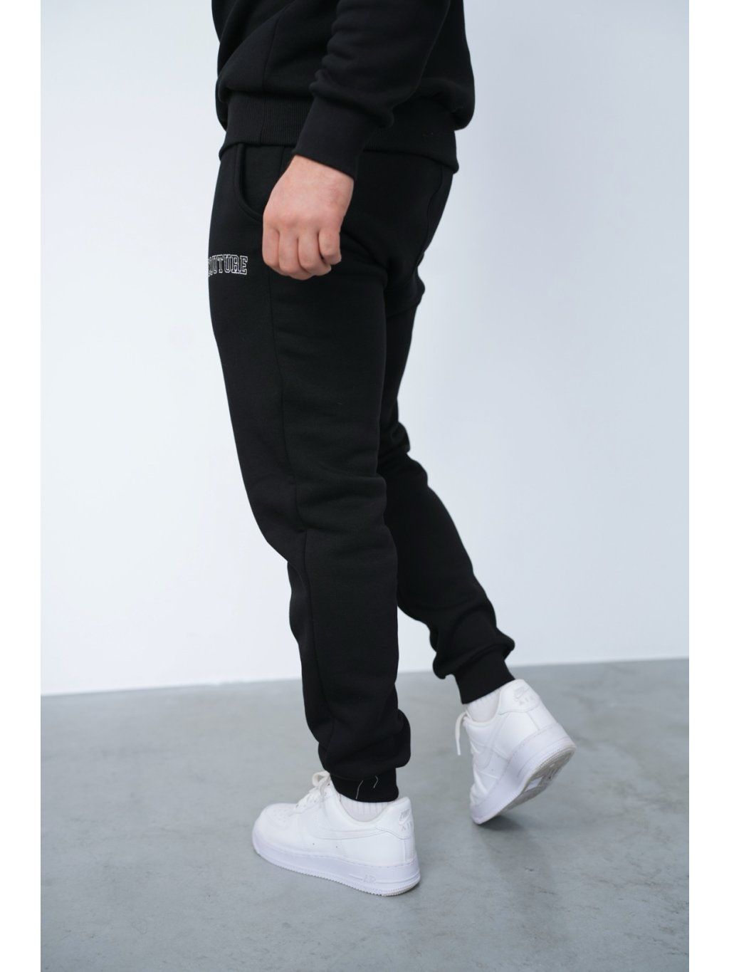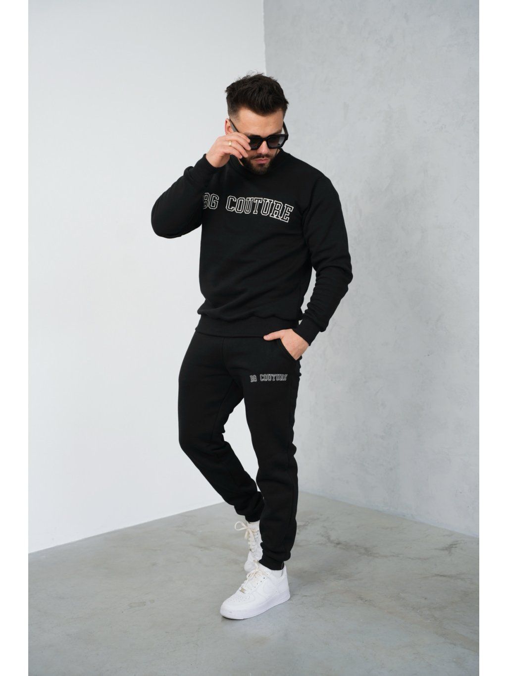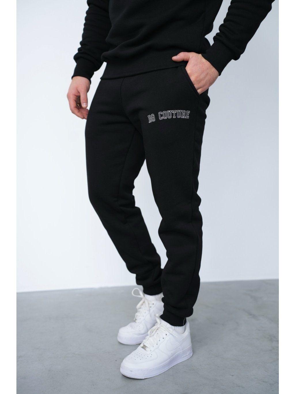 Zateplená bavlněná tepláková souprava BG MANIAC. Mikina a kalhoty jsou vyšité logem BG Brandenburg Couture. Mikina a kalhoty jsou zakončeny stahovací šňůrkou. Mikina nemá kapuci. Kalhoty mají elastický pas.