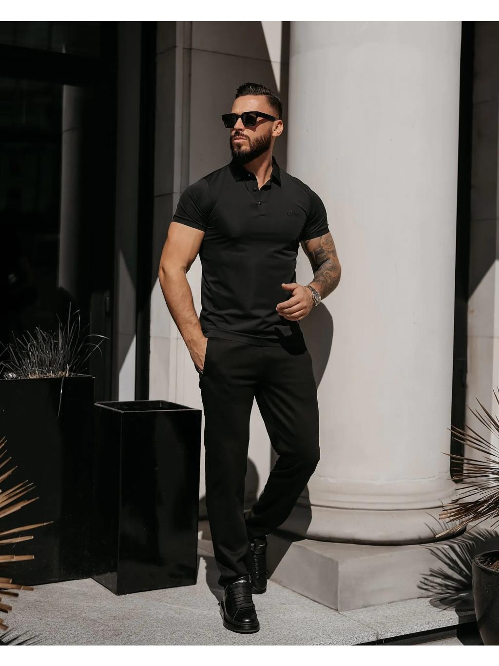 Pánská polokošile klasického střihu je určena pro muže, kteří hledají čistý vzhled pro elegantní ležérní styling, letní vycházky a každodenní nošení ve městě. Díky límci na knoflíky, strukturovanému úpletu a tonálnímu logu na hrudi působí model ZAIN v černé barvě strukturovaně, zatímco dotek elastanu pomáhá udržovat hladší střih.