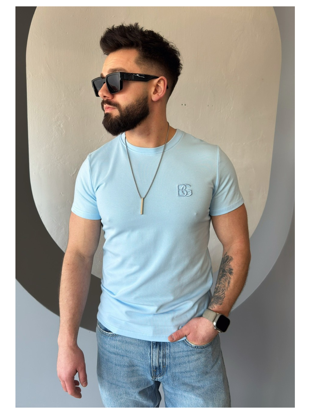 Klasické tričko BG BOND z vysoce kvalitní bavlny s přídavkem elastanu. Na hrudi je značka BG v barvě materiálu.