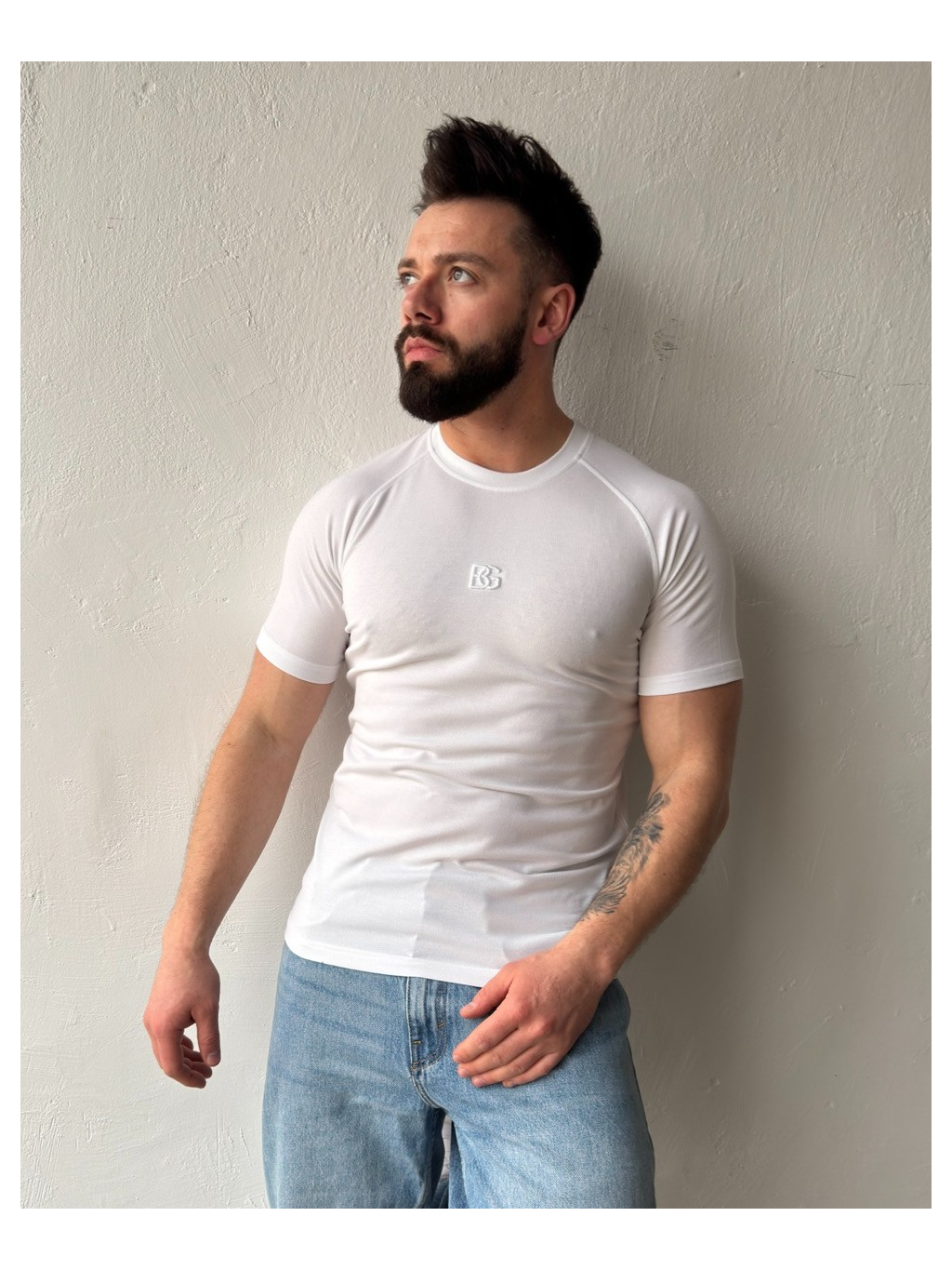 Pánské tričko BG LIGHT z kvalitního viskózového materiálu. Tričko podepsané monogramem BG uprostřed v tónu materiálu. Přiléhavý střih a raglánový rukáv zdůrazňují siluetu.