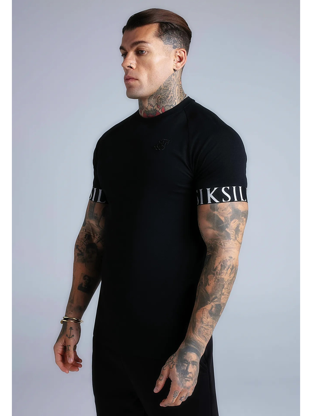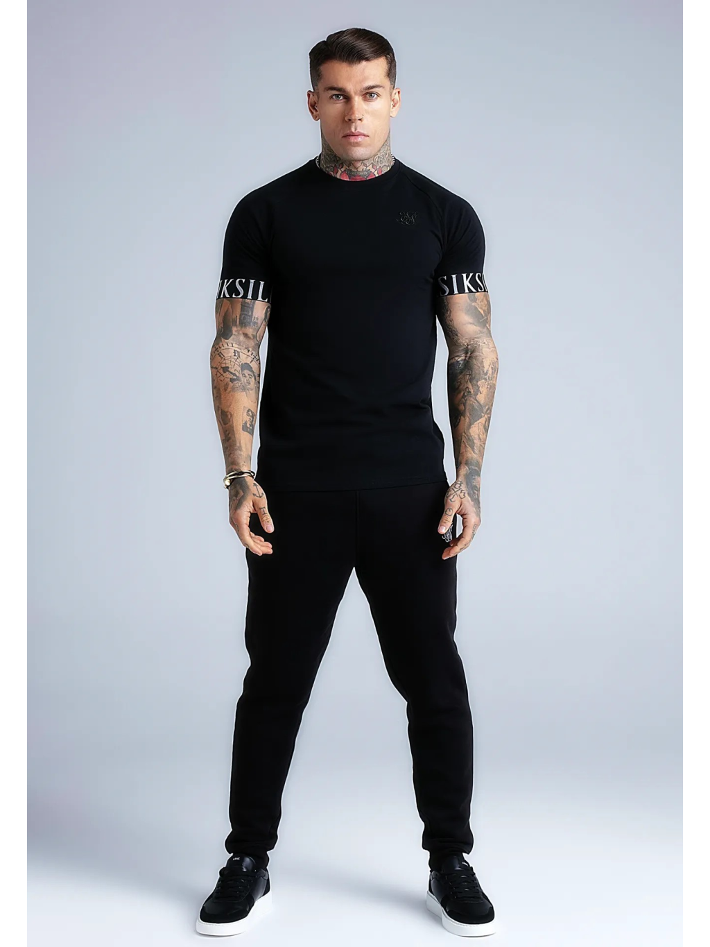Moderní černé pánské technické tričko navržené tak, aby zvýraznilo siluetu a maximalizovalo pohodlí při nošení. Svalnatý střih se přizpůsobí tělu, zatímco strečová tkanina zajistí volnost pohybu při tréninku i při každodenním stylingu. Sportovní charakter trička podtrhují raglánové rukávy, klasický posádkový výstřih a vyšité logo.