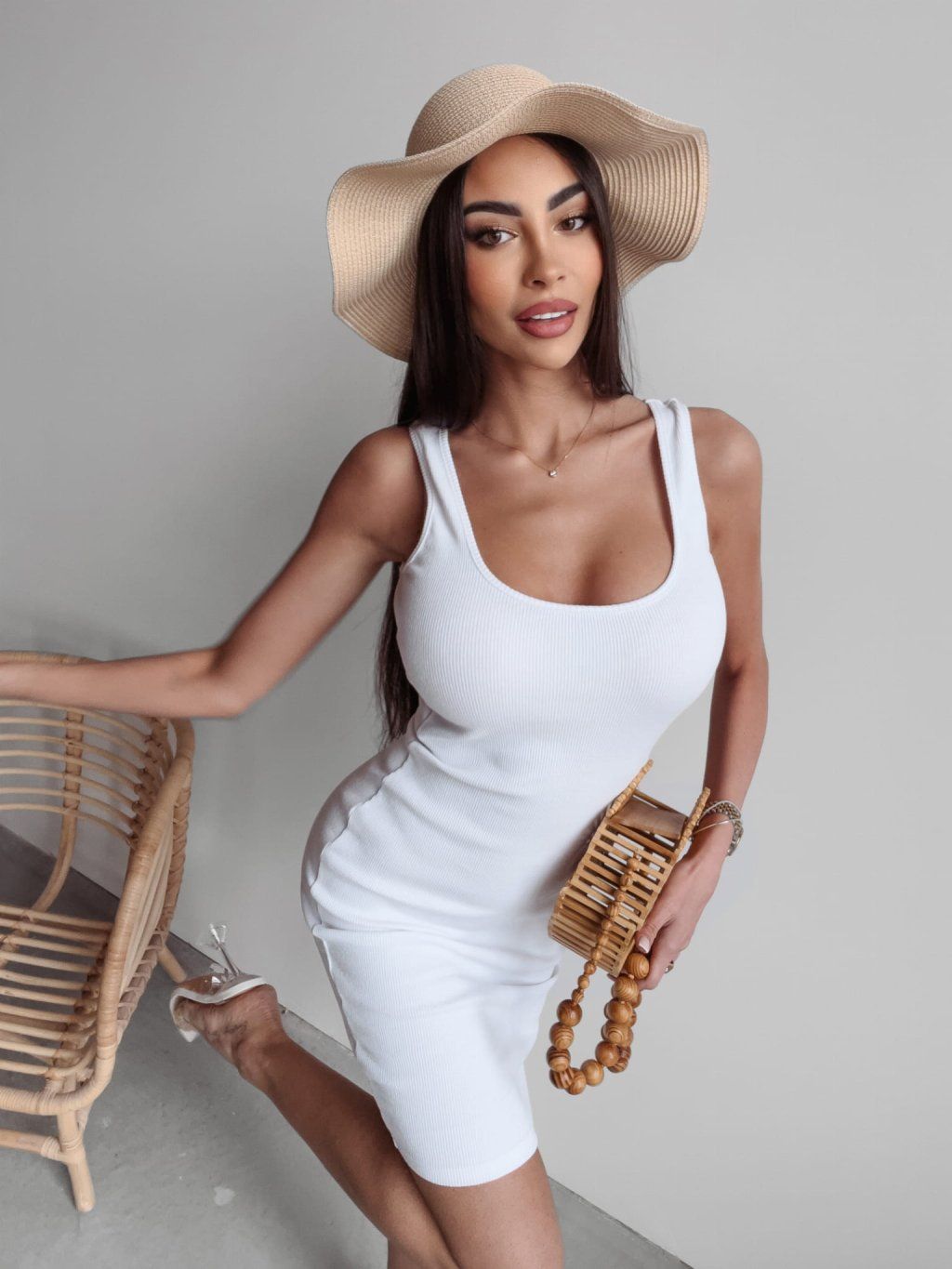 Přiléhavé krátké šaty z žebrovaného bavlněného úpletu. Dokonale padnou postavě. Vysoký výstřih a široká ramínka opticky prodlužují ramena. Zvolte pohodlí a minimalistický styl.