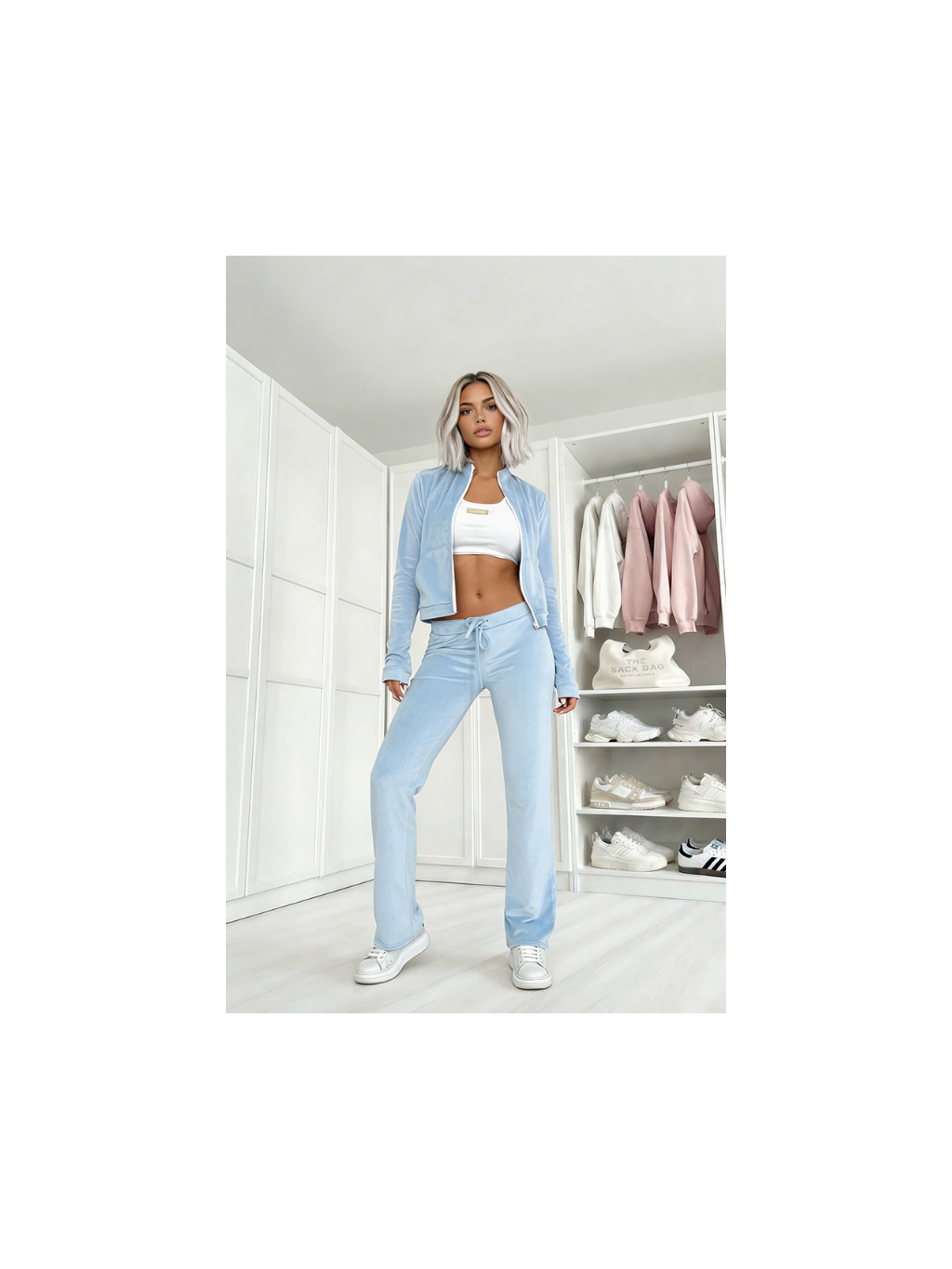 Tato sametová dvoudílná souprava v sobě spojuje styl a pohodlí. Jednoduché tepláky zajišťují pohodlí, zatímco stojáček a top na zip dodávají módní nádech. Ideální pro každodenní nošení i stylové příležitosti!