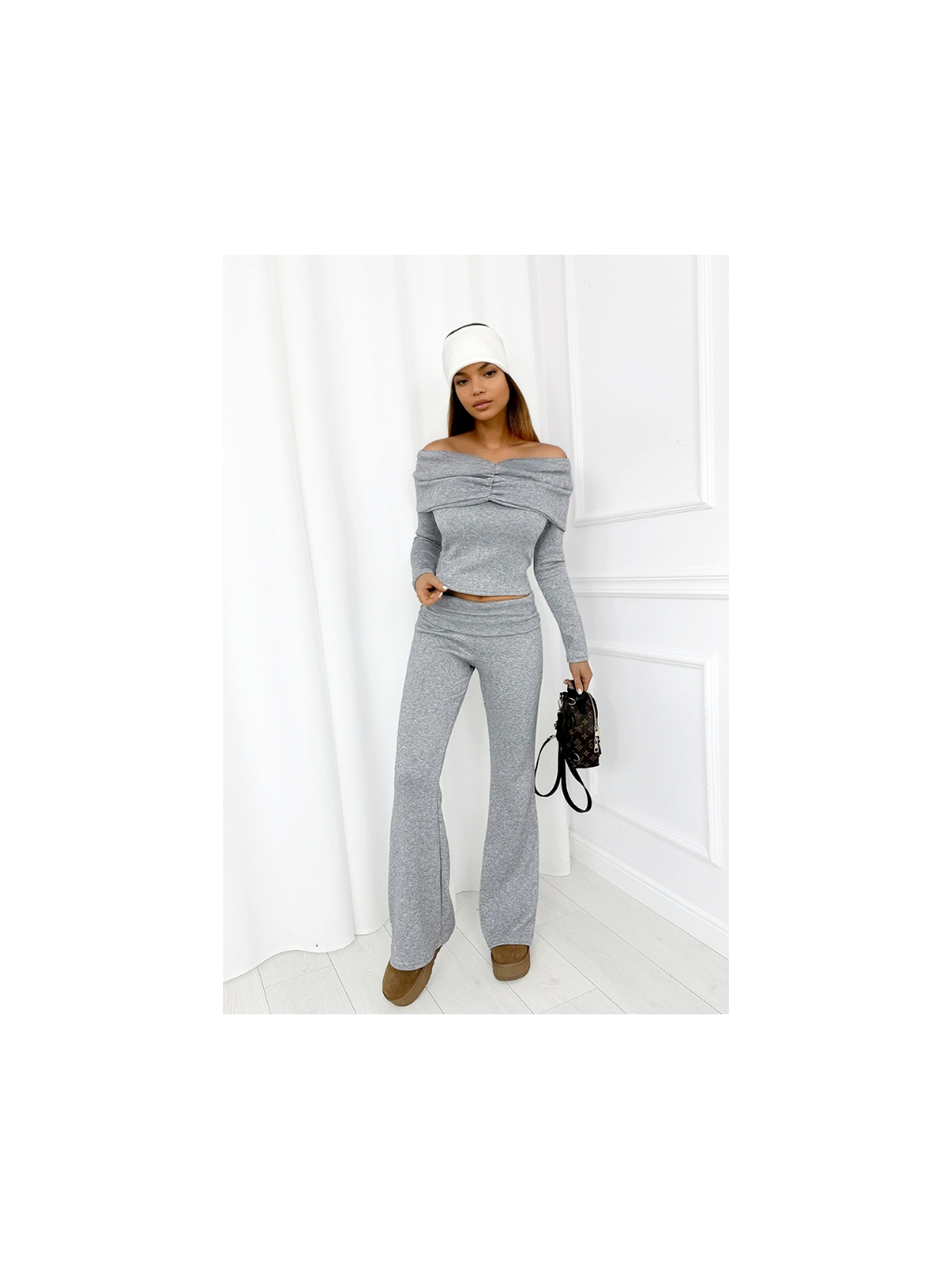 Stylová souprava z měkkého, pružného úpletu, která se skládá z halenky s odhalenými rameny a rozšířených kalhot . Tato souprava dokonale lichotí postavě a kombinuje pohodlí s elegancí. Je to perfektní volba pro každodenní nošení, setkání s přáteli nebo neformální večer.