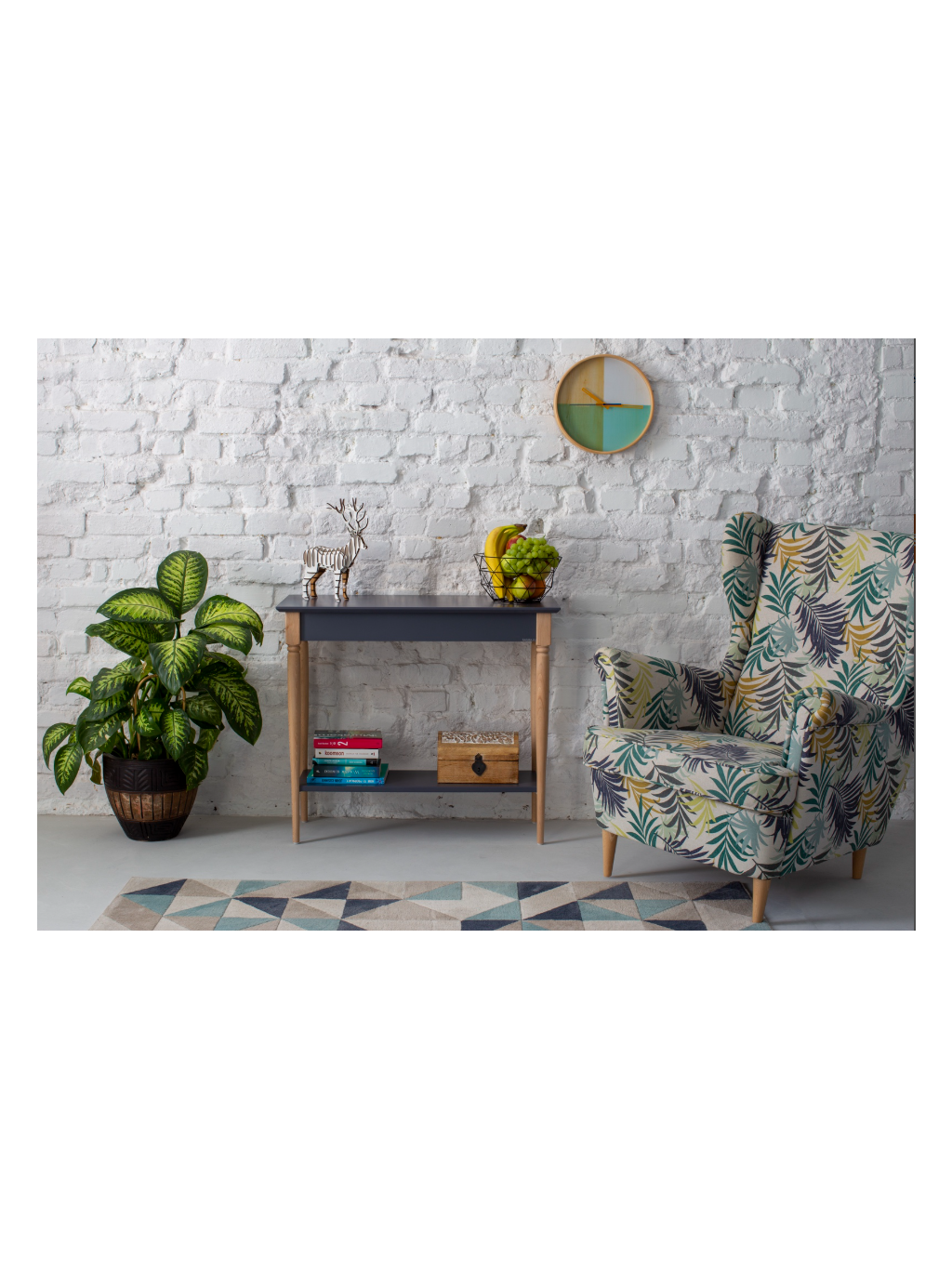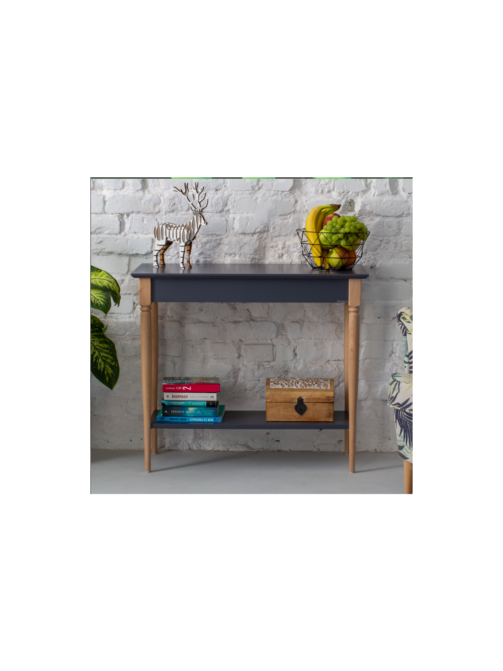 Tento kus nábytku ve vaší domácnosti poslouží k mnoha účelům. V chodbě se skvěle hodí jako police na dekorace nebo stojan na květiny, v ložnici jako pohodlný toaletní stolek a v obývacím pokoji bude skvělou alternativou k dalšímu stolku na občerstvení při větších setkáních. Pod hlavní deskou stolu se nachází police, která tvoří funkční doplněk celé kompozice.