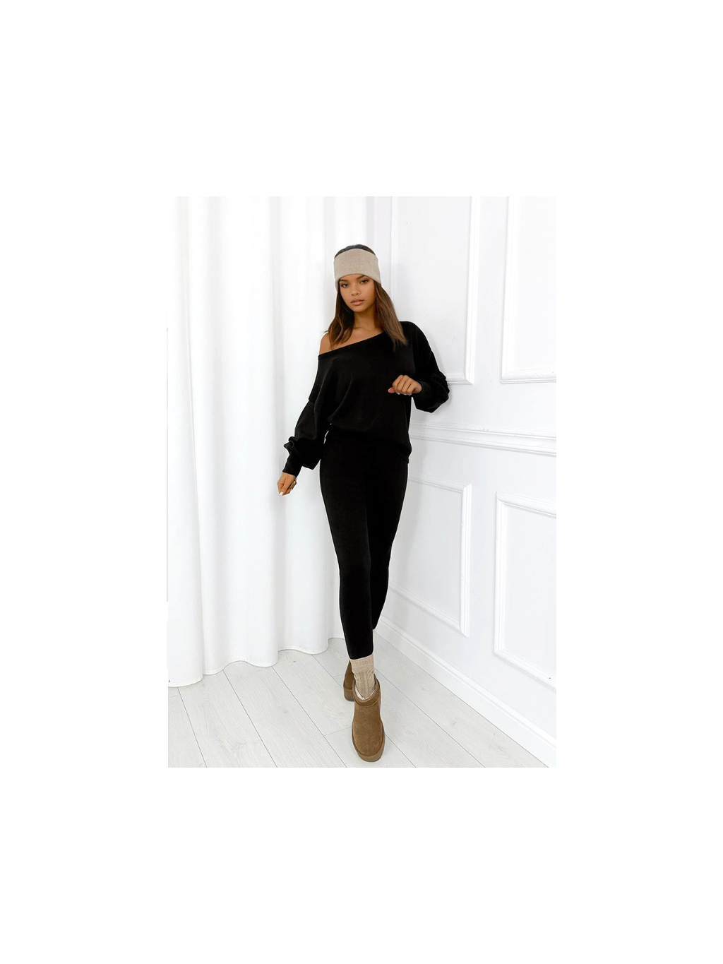 Volnější svetr s mírně spadlými rameny dodává smyslnost, zatímco přiléhavé legíny krásně tvarují nohy a hýždě .