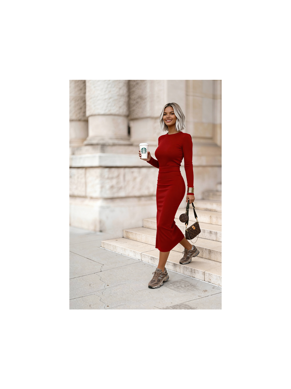 Souprava midi sukně a halenky Paola červená