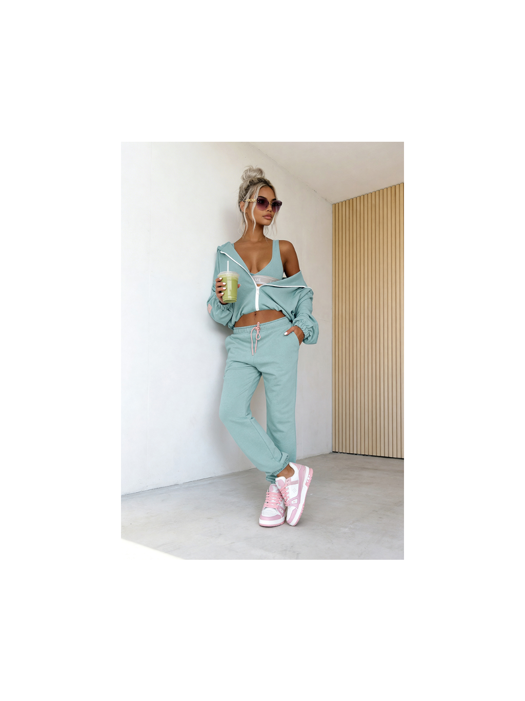 Tepláková souprava 3 v 1: kalhoty, mikina, top, pistáciová, sportovní