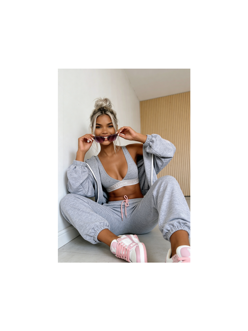 Tepláková souprava 3 v 1: kalhoty, mikina, top, šedá, sportovní