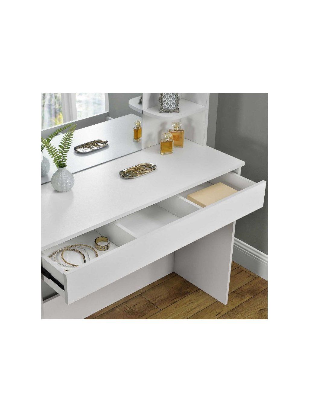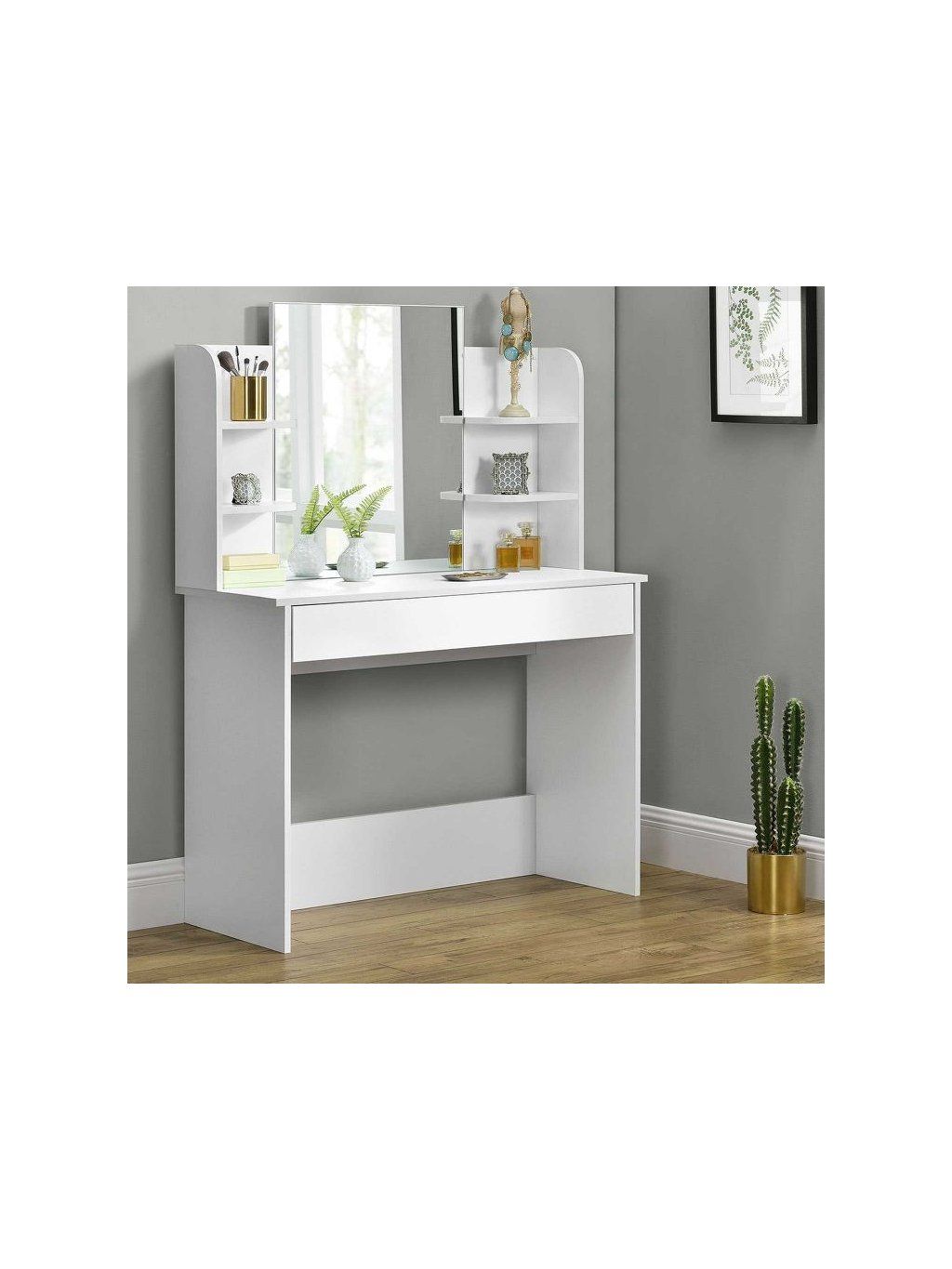 Toaletní stolek Mirra 20 do ložnice - bílý, se zrcadlem, policemi a zásuvkou