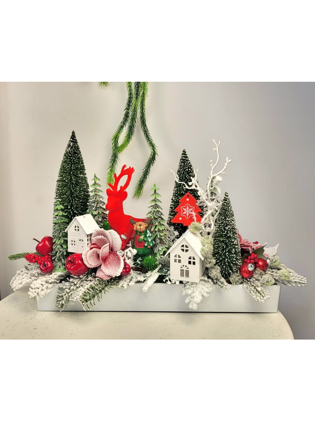 Vánoční dekorace s červeným jelenem