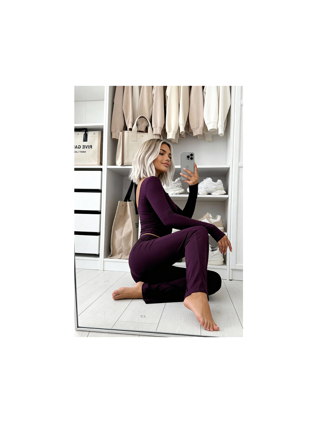 Viskózový set Lizzy, halenka a vínové zvonové kalhoty