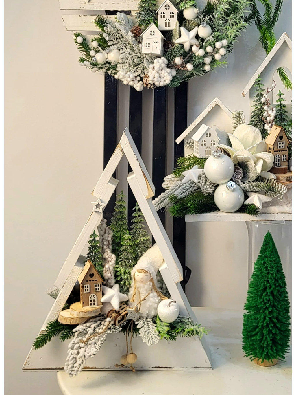 - Dřevěný vánoční stromeček plný poutavých ozdob z obou stran